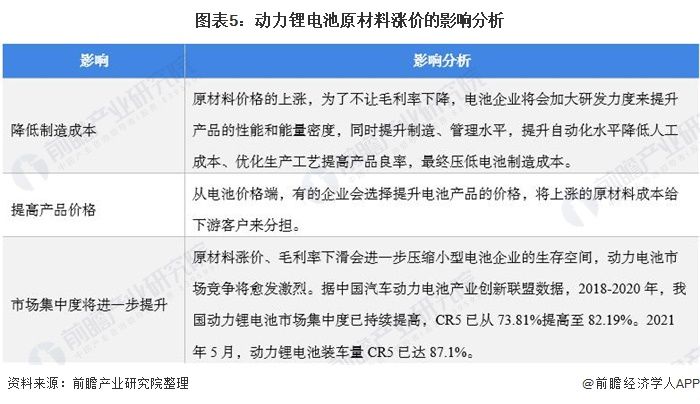 除以之外,对于动力锂电池行业来说,原材料价格的上涨和毛利率下滑会进一步压缩小型电池企业的生存空间,动力电池市场竞争集中度将进一步提升。