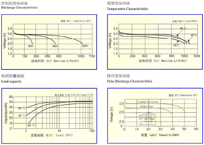 标称电压:3.0V尺 寸:12.5*2.5(mm)标称容量:48mAh标称电流:0.1mA最大连续电流:1.0mA最大脉冲电流:5.0mA重 量:0.7g
